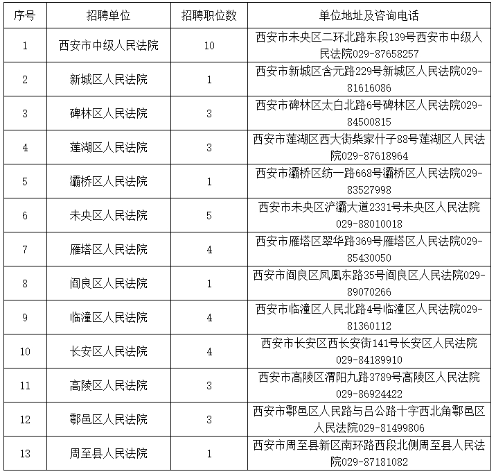 西安法院2023年度面向社會(huì)公開招聘聘用制書記員職位表